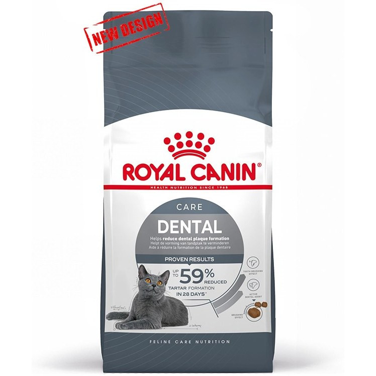 غذای خشک گربه رویال کنین مدل دنتال وزن ۱٫۵ کیلوگرم (Royal Canin Cat Dental) یکی از غذا های پر طرفدار برای گربه است که برای گربه های بالغ استفاده میشود.غذای درمانی دنتال رویال کنین یک خوراک خشک کامل و مقوی برای گربه های بالغ است که سبب محافظت از دندان های حیوان شده و اثری شبیه به مسواک زدن دارد.غذای درمانی دنتال رویال کنین توسط متخصصان فرمول سازی شده است و برای تمامی گربه های بالغ از هر نژادی که باشند، قابل استفاده می باشد. در طی استفاده از این محصول رسوب های دندانی قبلی از بین رفته و از تشکیل رسوب های جدید، پیشگیری خواهد شد. ساختار غذا به گونه ای تولید شده است که حیوان را ترغیب به جویدن می کند. بافت غذا، سطح دندان را کاملا تمیز کرده و اثری مشابه با مسواک زدن دارد.