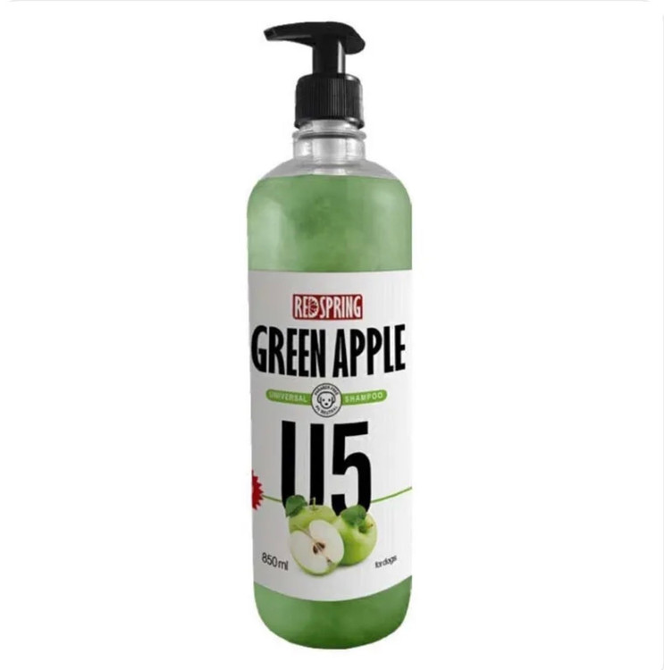 شامپو سگ رد اسپرینگ با رایجه سیب سبز ۸۵۰ میلی لیتر (U۵) (Red Spring Shampoo for Dog With Green Apple Scent)، با استفاده از بهترین مواد اولیه جهت بهبود بهداشت و سلامت مو و پوست سگ با هر نوع مو و نژادی زیر نظر متخصصان در این زمینه تهیه و تولید شده است. شامپو روزانه رد اسپرینگ در رایحه سیب سبز حاوی ویتامین های گروه B بوده و PH طبیعی این محصول از شوره زدن و خشکی مو و پوست جلوگیری می کند. همچنین در فرمول ساخت این شامپو از پارابن (ماده ای که استفاده از آن در دراز مدت باعث خشکی و زمخت شدن پوست می شود) استفاده نشده است.